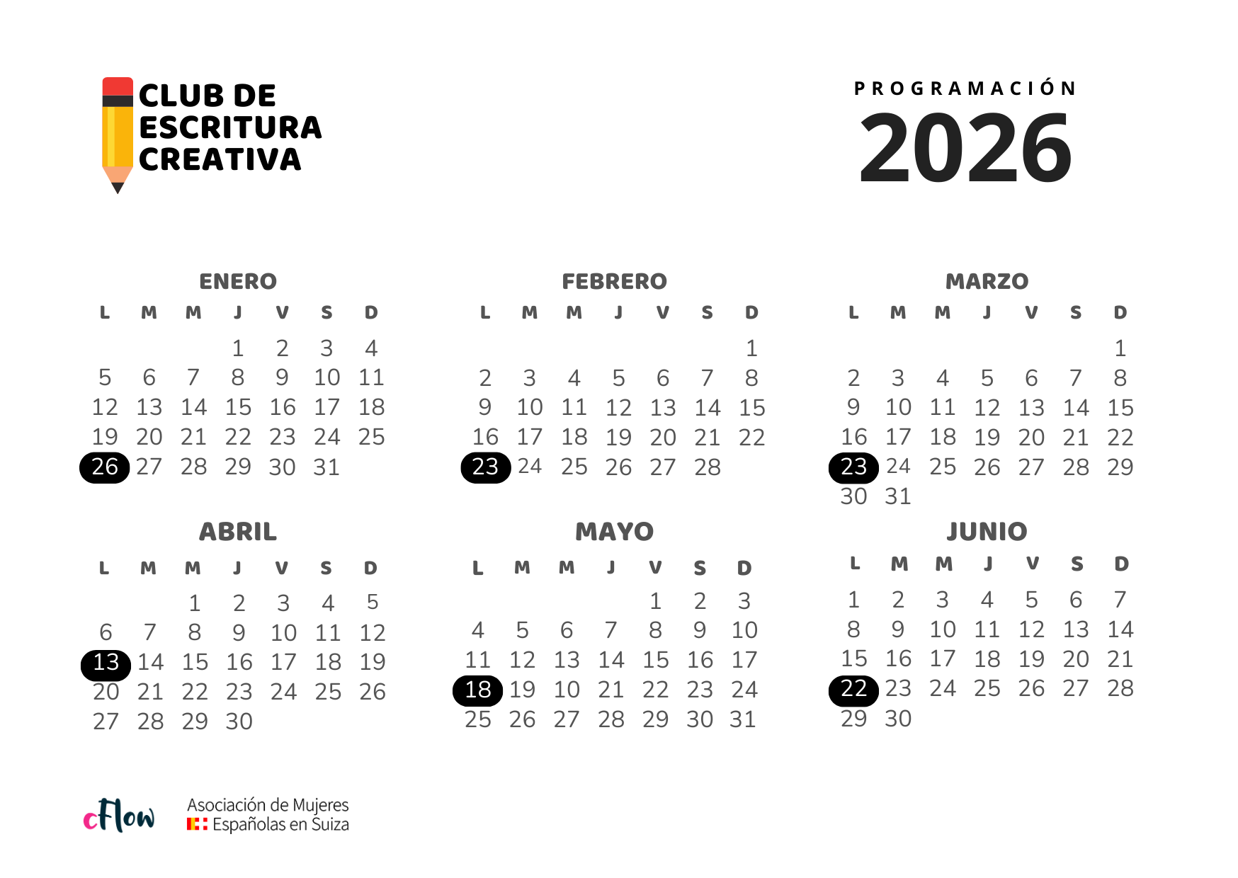 El Club de Escritura nace de la colaboración entre AMES (Asociación de Mujeres Españolas en Suiza) y cFlow.